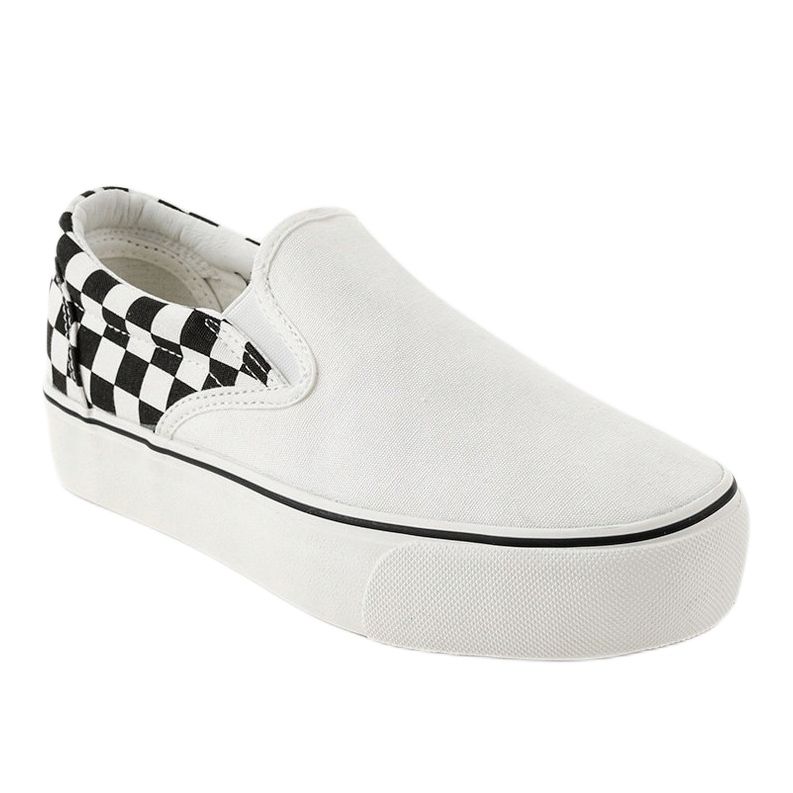 Białe trampki wsuwane R-440 czarne to idealne połączenie komfortu i modnego designu, które z pewnością przypadnie do gustu każdej kobiecie. Te klasyczne trampki w białym kolorze wyróżniają się niebanalnym wzorem szachownicy widocznym na tylnej części cholewki, co nadaje im oryginalnego charakteru.