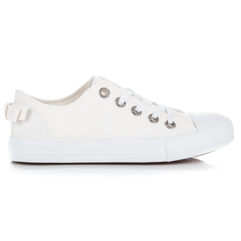 Oto białe trampki z kokardką, które są idealnym dopełnieniem każdej damskiej stylizacji. Produkowane przez markę Inna marka, te niskie trampki łączą komfort z modnym designem. Wykonane z wysokiej jakości tkaniny, zapewniają przewiewność i wygodę noszenia, co czyni je doskonałym wyborem na co dzień.
