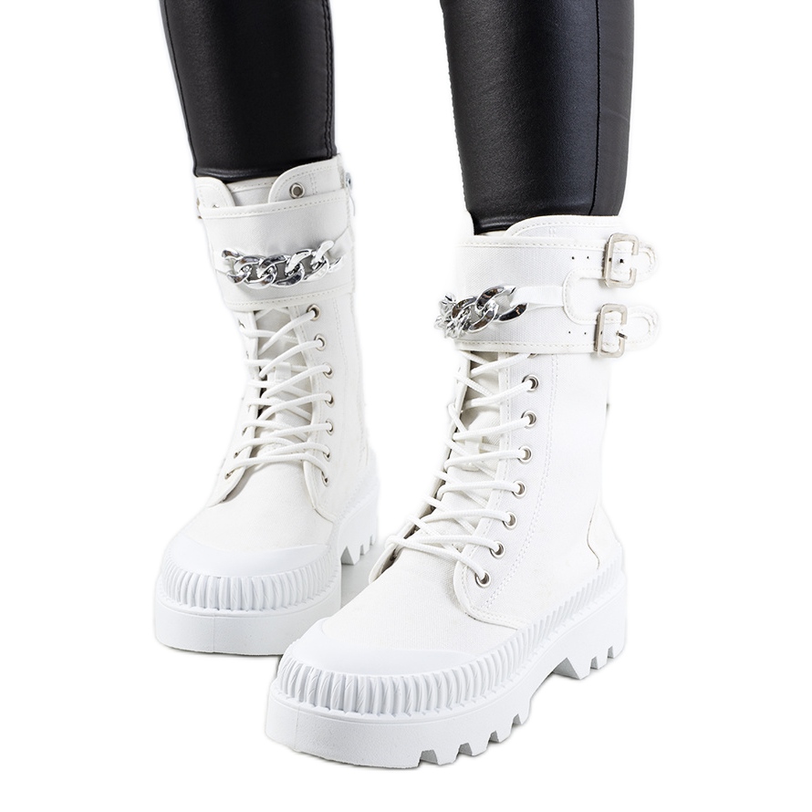 Przedstawiamy białe trampki z łańcuchem model Taus – niezwykle stylowe i wygodne obuwie, które doskonale uzupełni każdą letnią stylizację. Wysoka, traktorowa podeszwa nie tylko zapewnia modny wygląd, ale także doskonałą przyczepność i komfort podczas użytkowania.