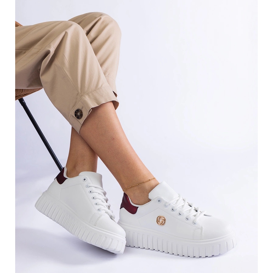 Szczegóły: Biało-bordowe sneakersy na grubej podeszwie białe