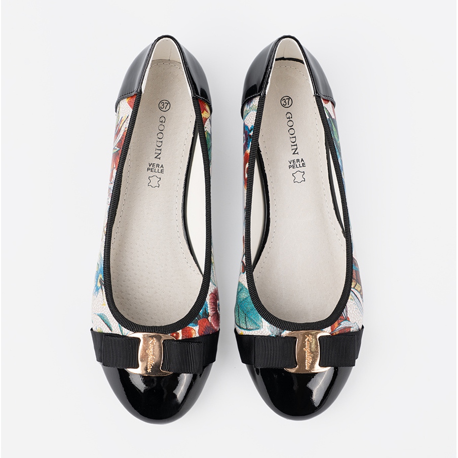 Poznaj baleriny Goodin w wyjątkowym biało-czarnym połączeniu z urokliwym kwiatowym wzorem. Te stylowe czółenka to doskonała propozycja dla kobiet, które pragną połączyć modny wygląd z niezrównanym komfortem noszenia. Dzięki braku obcasa, baleriny te są idealnym wyborem na codzienne wyjścia, zapewniając pełną swobodę ruchu.