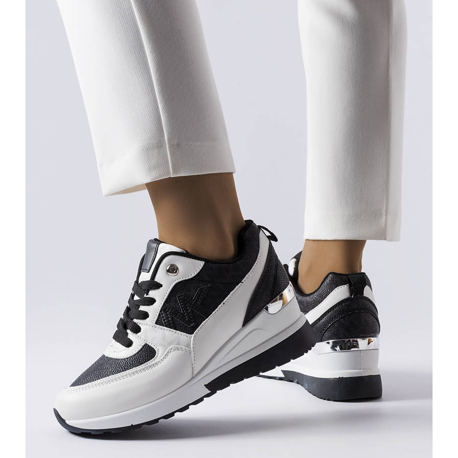 BM BM Biało-czarne sneakersy na koturnie Gaetane białe