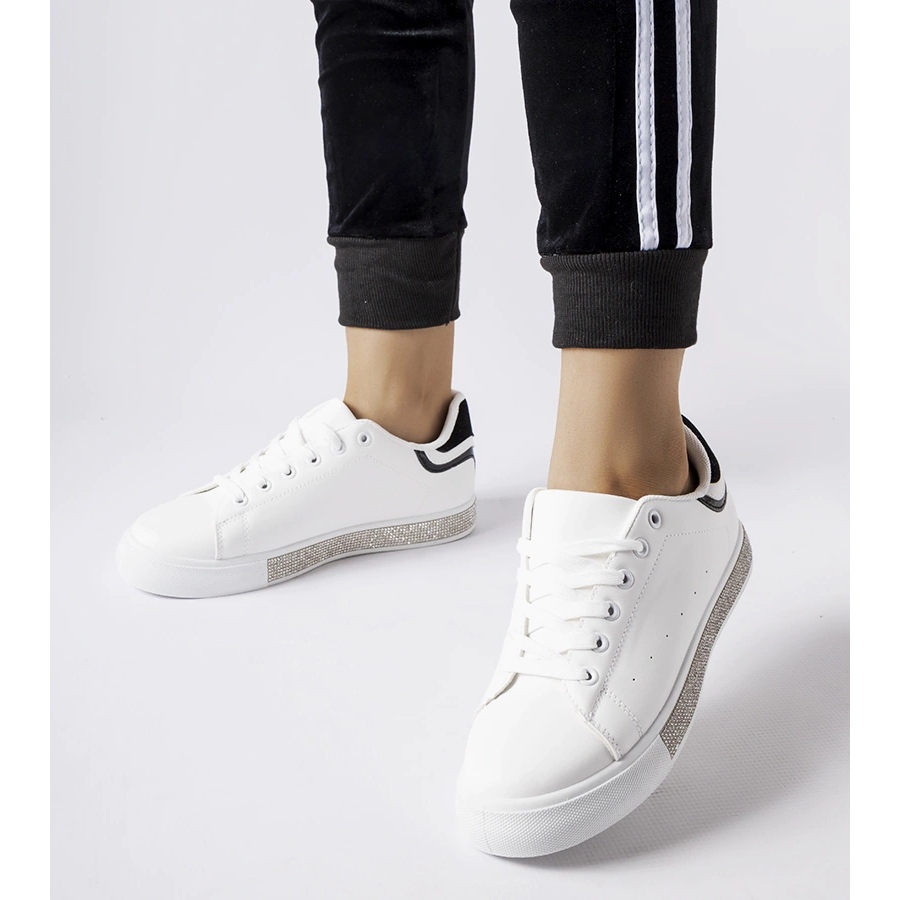 Inna marka Biało-czarne sneakersy z cyrkoniami Dina białe