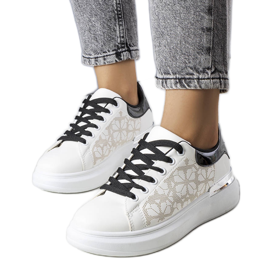 Szczegóły: Biało-czarne sneakersy zdobione perforacją Erin białe