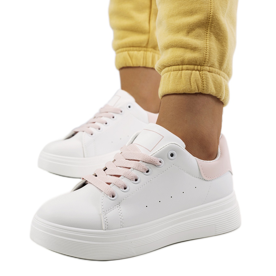 Inna marka Biało różowe sneakersy na platformie Justar białe