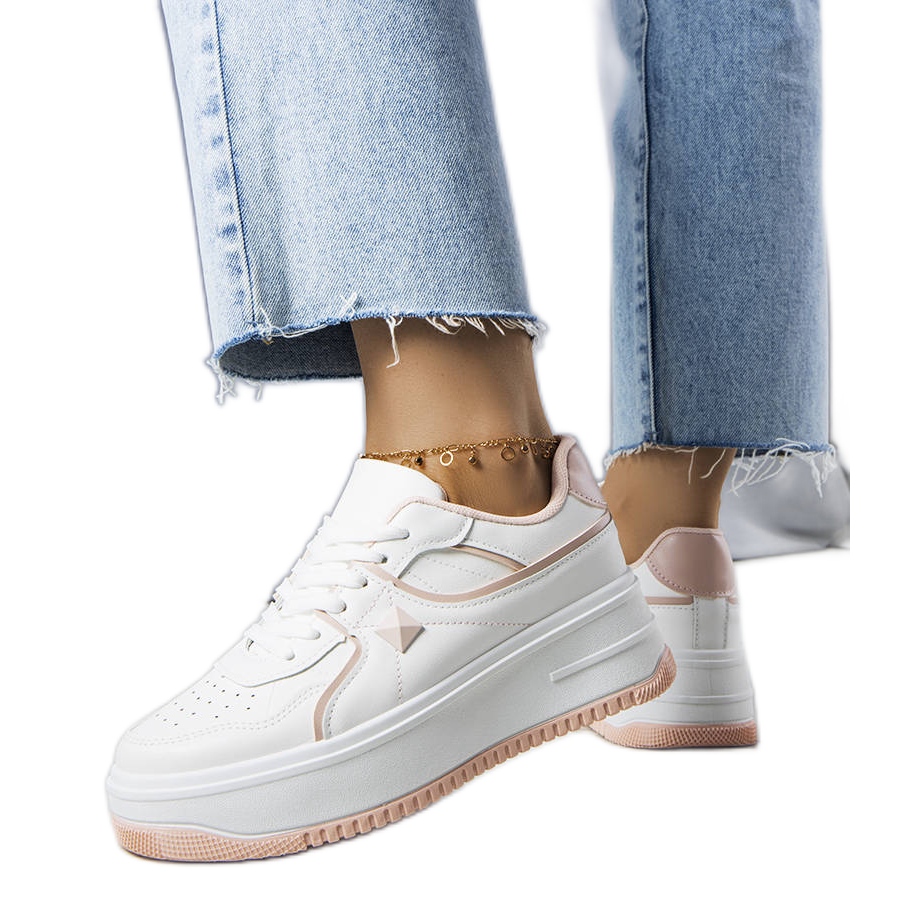 Inna marka Biało-różowe sneakersy na platformie Lepage białe
