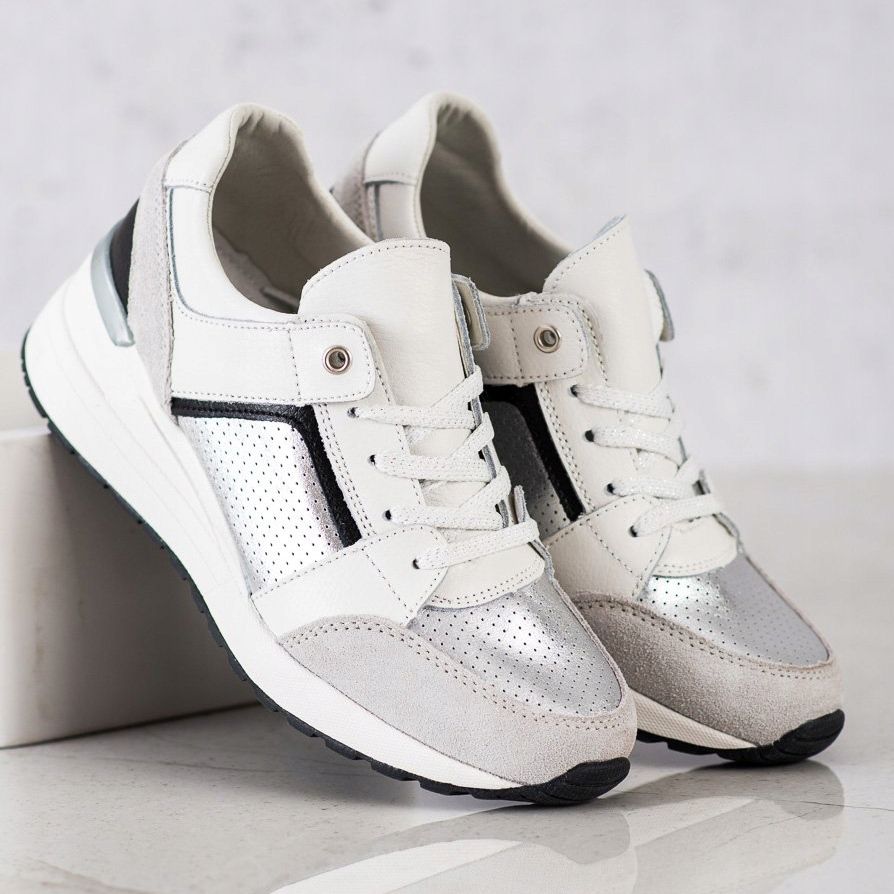 Szczegóły: Goodin Biało-srebrne Sneakersy Ze Skóry białe czarne srebrny szare