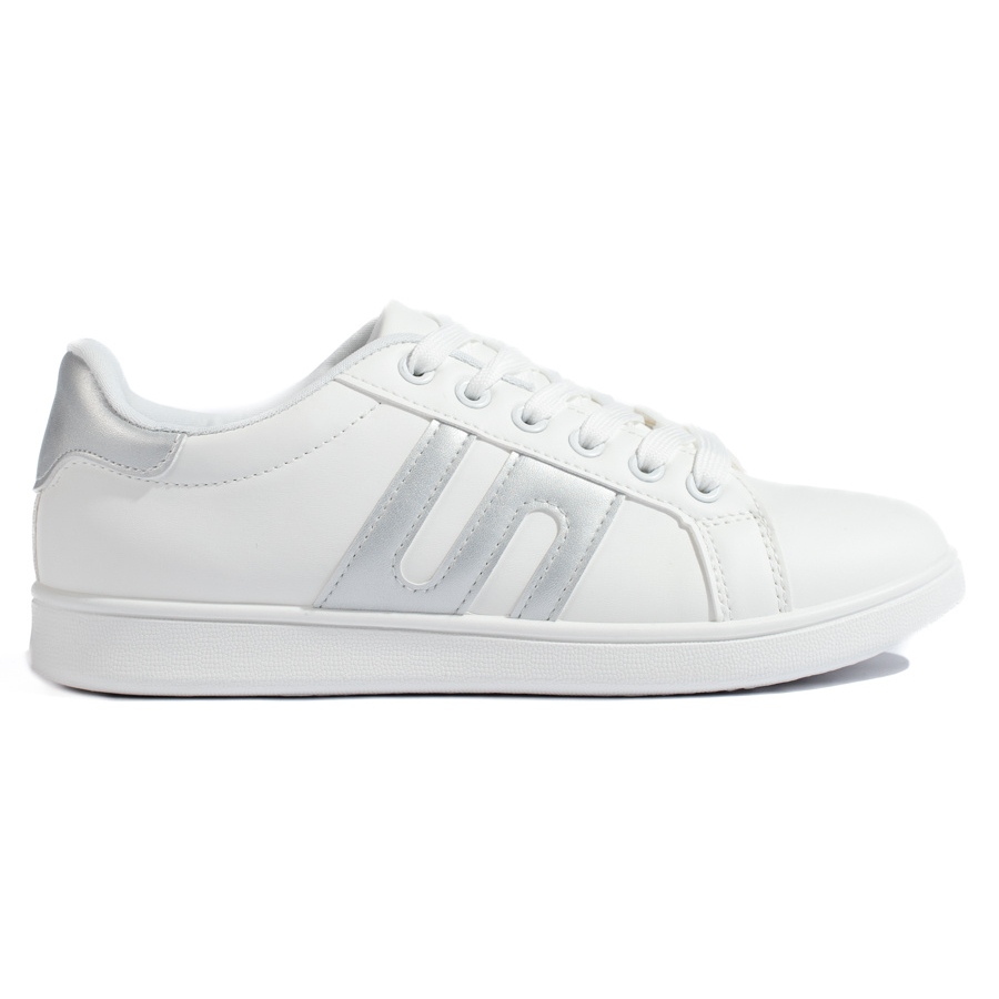 - Model: Biało-srebrne trampki damskie