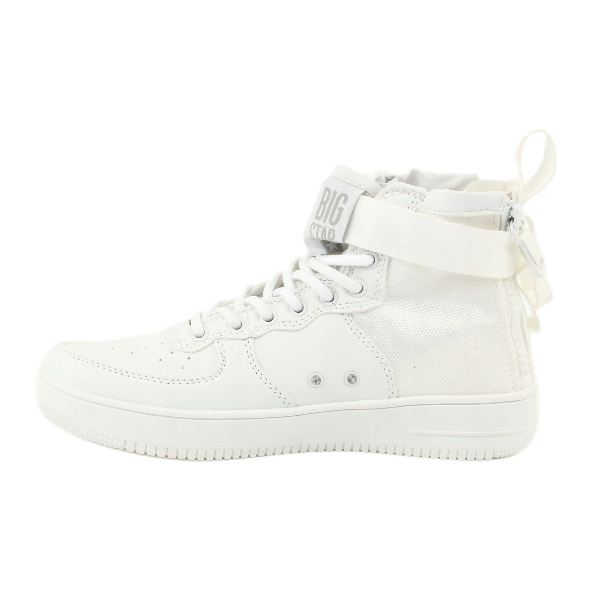 Big Star 274648 — białe trampki (wysokie), wykonane ze skóry ekologicznej z materiałowymi wstawkami. Komfortowe i stylowe obuwie na co dzień — idealne na spacer, miasto i wyjazdy. Klasyczny wygląd w połączeniu z praktycznymi rozwiązaniami sprawia, że to uniwersalny wybór do wielu stylizacji.