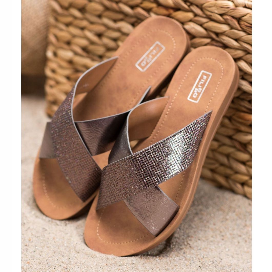 Filippo Błyszczące Klapki Z Eko Skóry to must-have w każdej szafie współczesnej kobiety, która ceni sobie połączenie wygody i stylu. Zamów teraz i ciesz się modnym wyglądem oraz komfortem przez cały sezon!