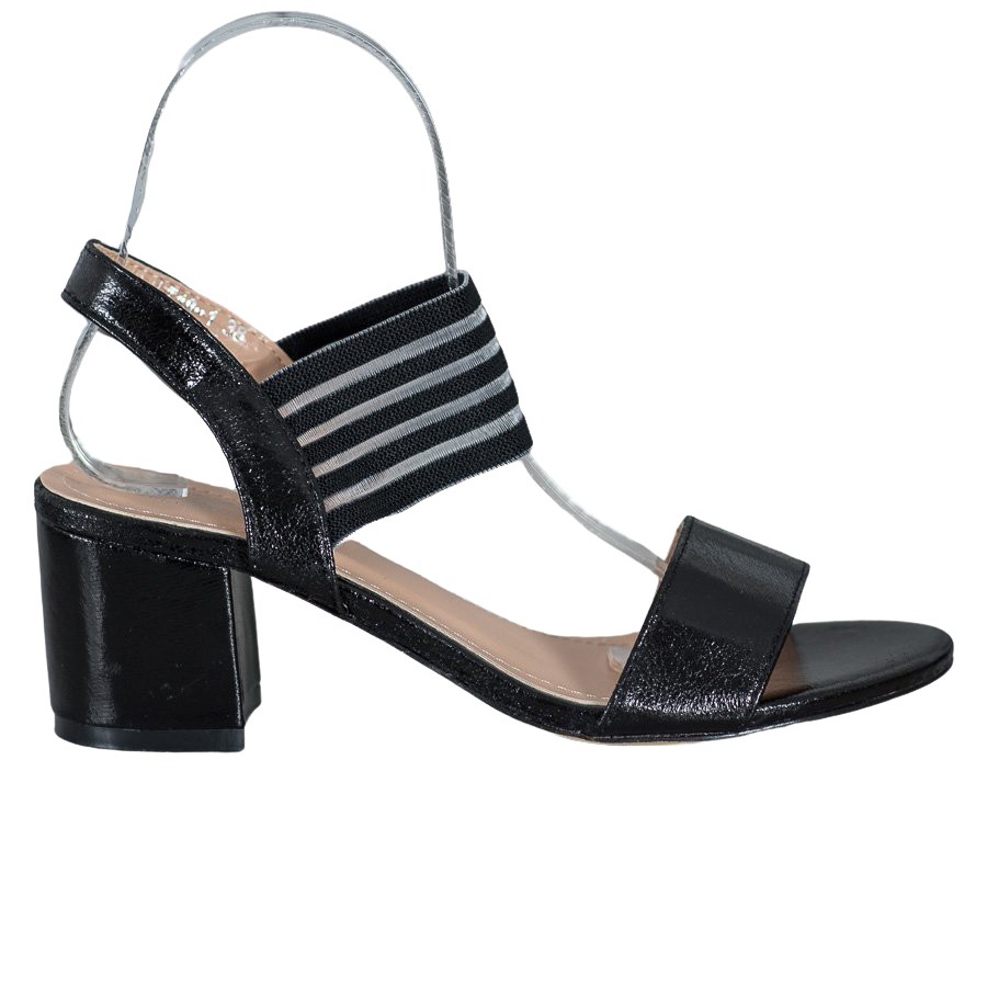 Z przyjemnością prezentują one minimalistyczny design z otwartym zapiętkiem oraz nowoczesnym 6,5-centymetrowym obcasem w formie słupka. Dzięki temu, nie tylko efektownie się prezentują, ale również zapewniają wygodę podczas noszenia. Klasyczny, czarny kolor sprawia, że sandały idealnie pasują do wielu stylizacji, zarówno casualowych, jak i eleganckich.