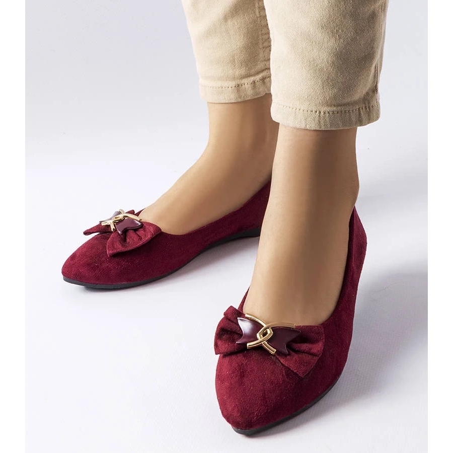 Szczegóły: D/GMR Bordowe balerinki ze szpiczastym noskiem Jetté czerwone