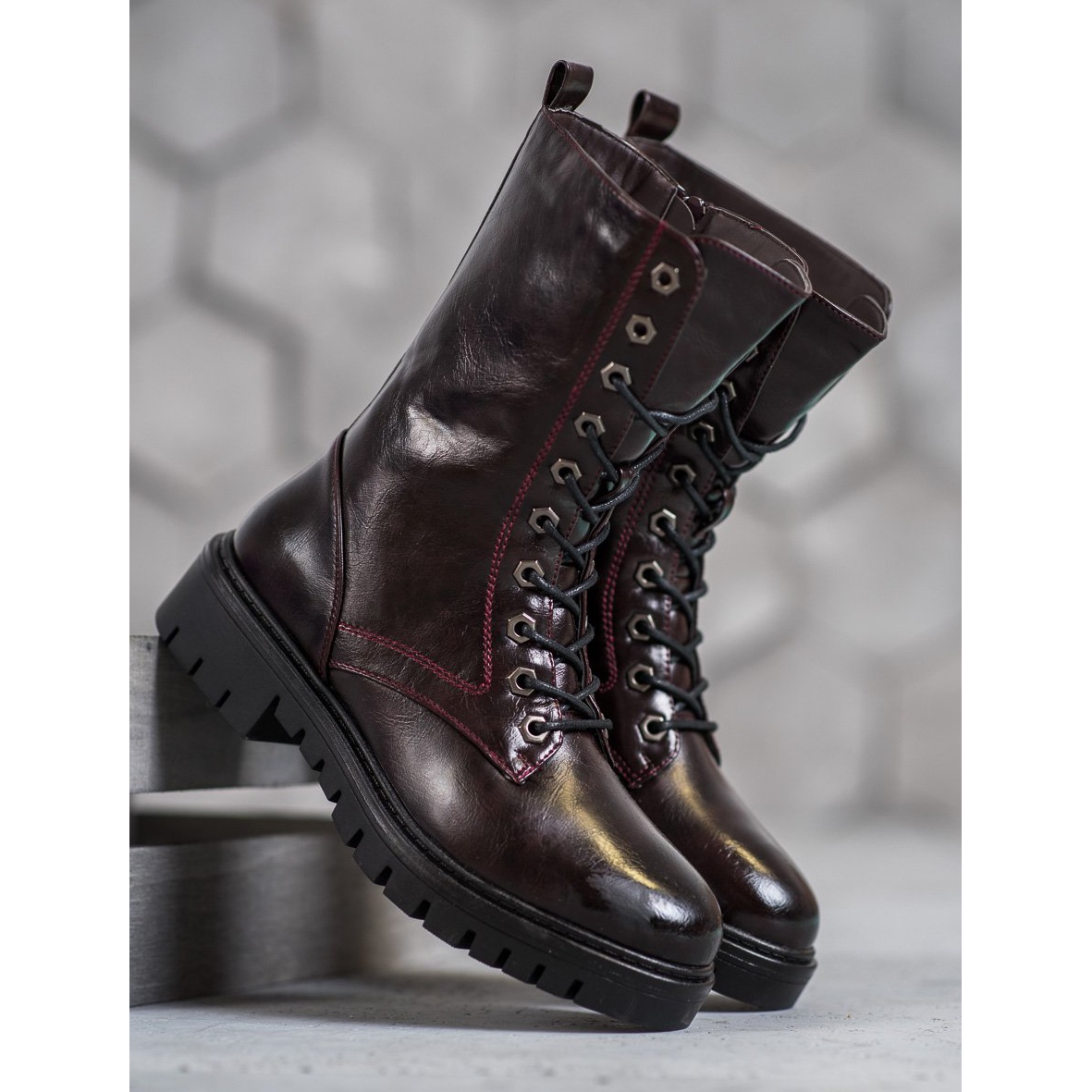 SHELOVET SHELOVET Bordowe Botki Glany czerwone