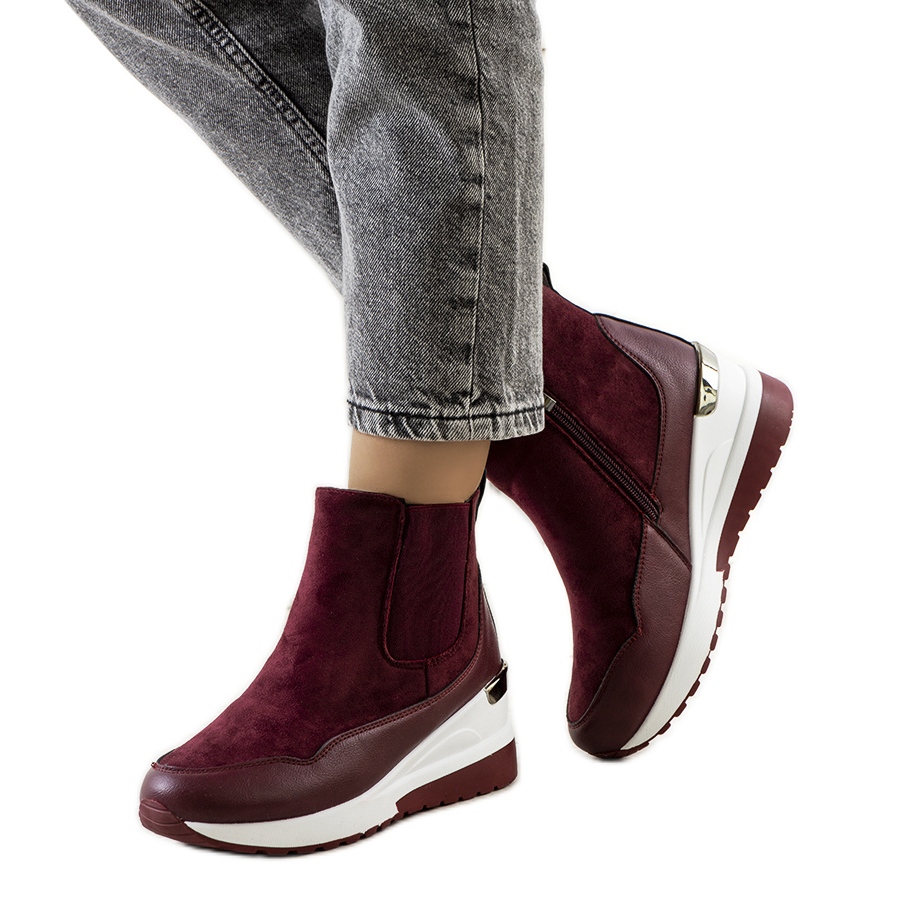 Inna marka Bordowe botki na koturnie ocieplane Arkala bordowy