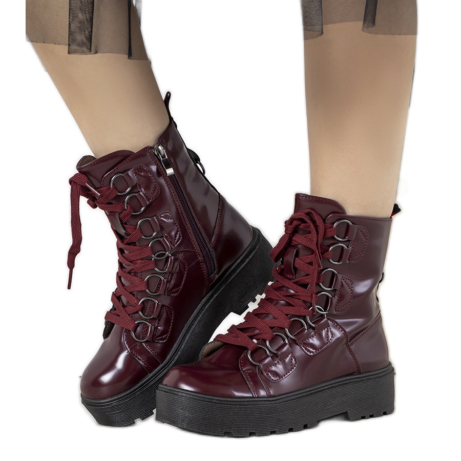 Szczegóły: Bordowe botki na wysokiej podeszwie Orane czerwone