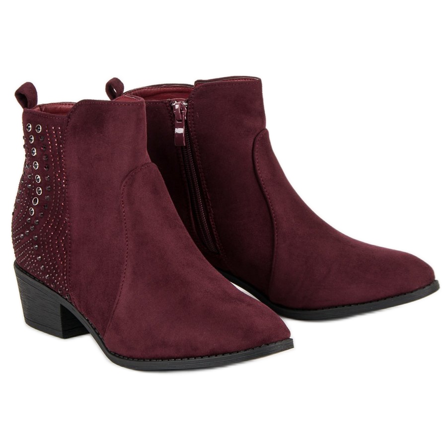 Szczegóły: Nio Nio Bordowe botki z kryształkami czerwone