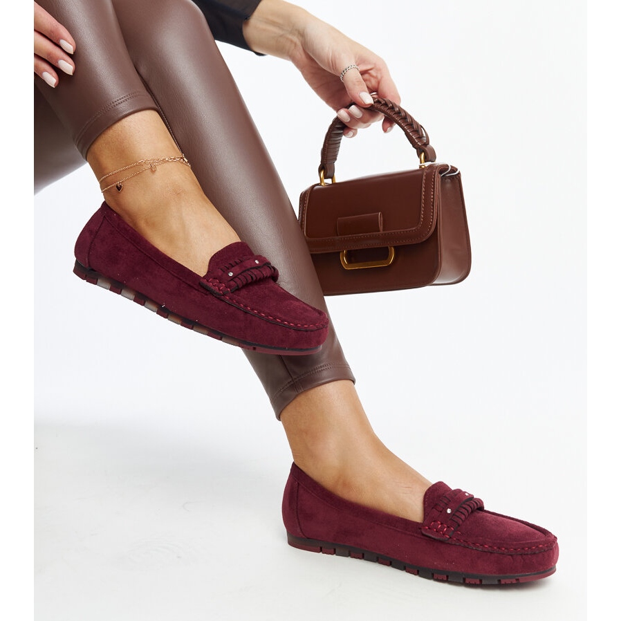 Inna marka Bordowe mokasyny z ozdobnym paseczkiem Widaad czerwone