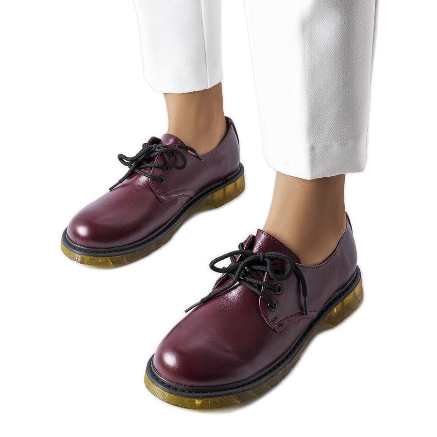 Szczegóły: BM Bordowe półbuty typu glany Parfait czerwone