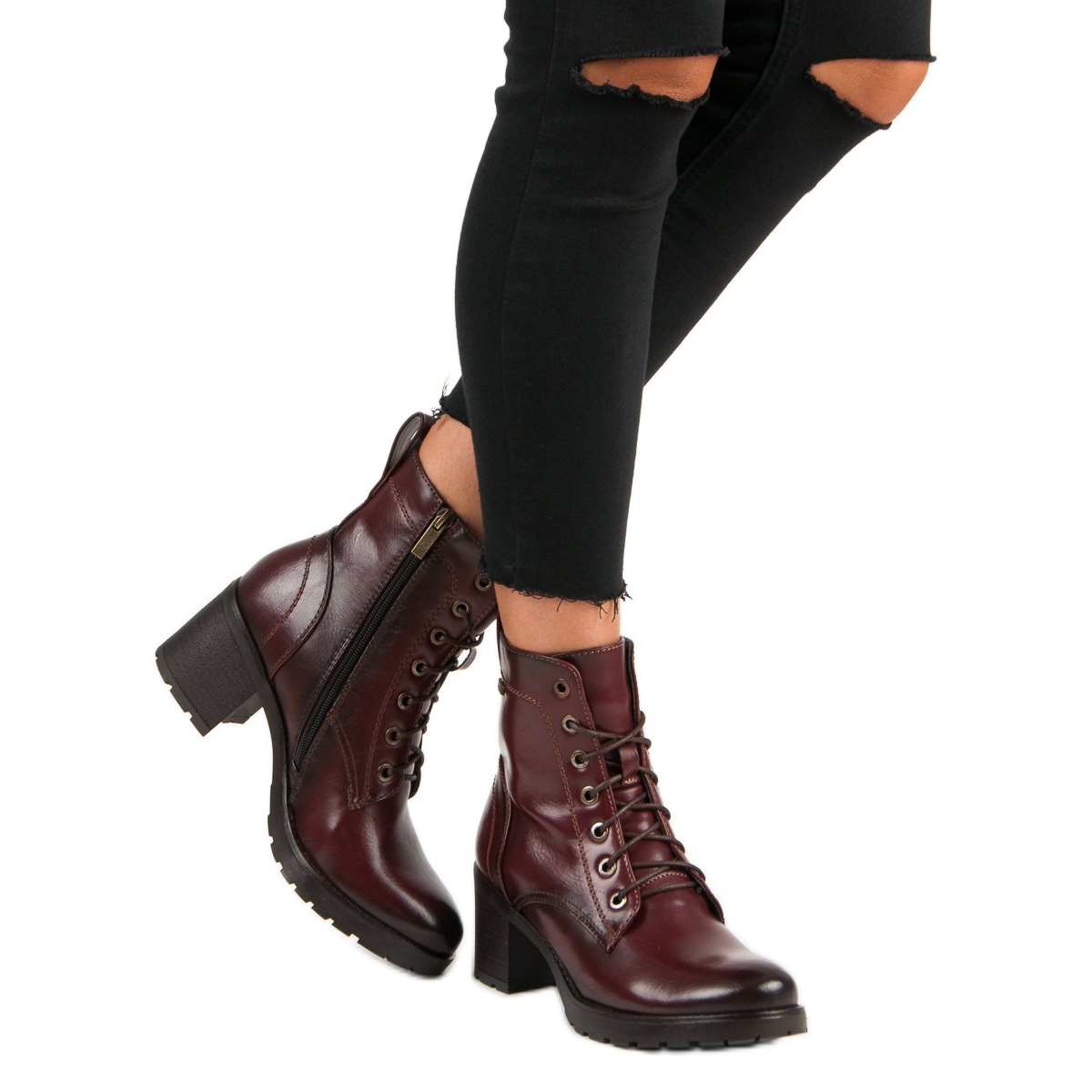 Vinceza Bordowe sznurowane botki vinceza czerwone