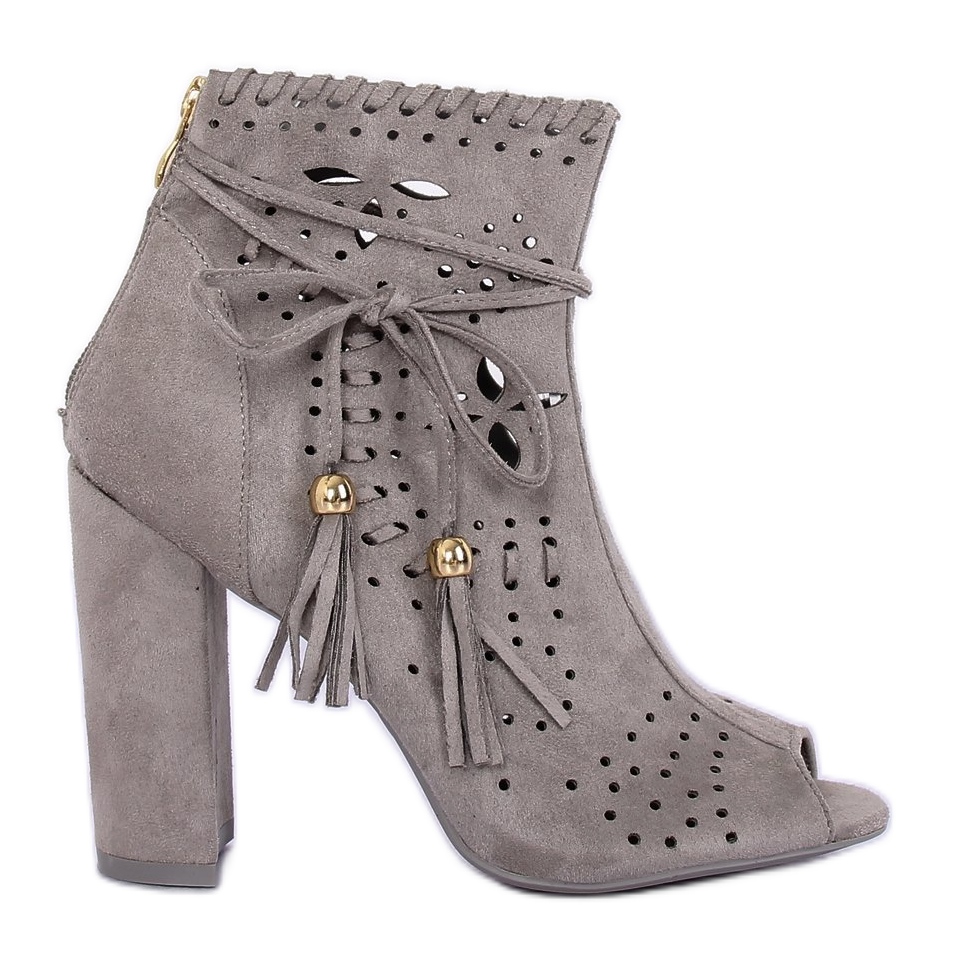 Szczegóły: Botki ażurowe open toe szare M285P Grey