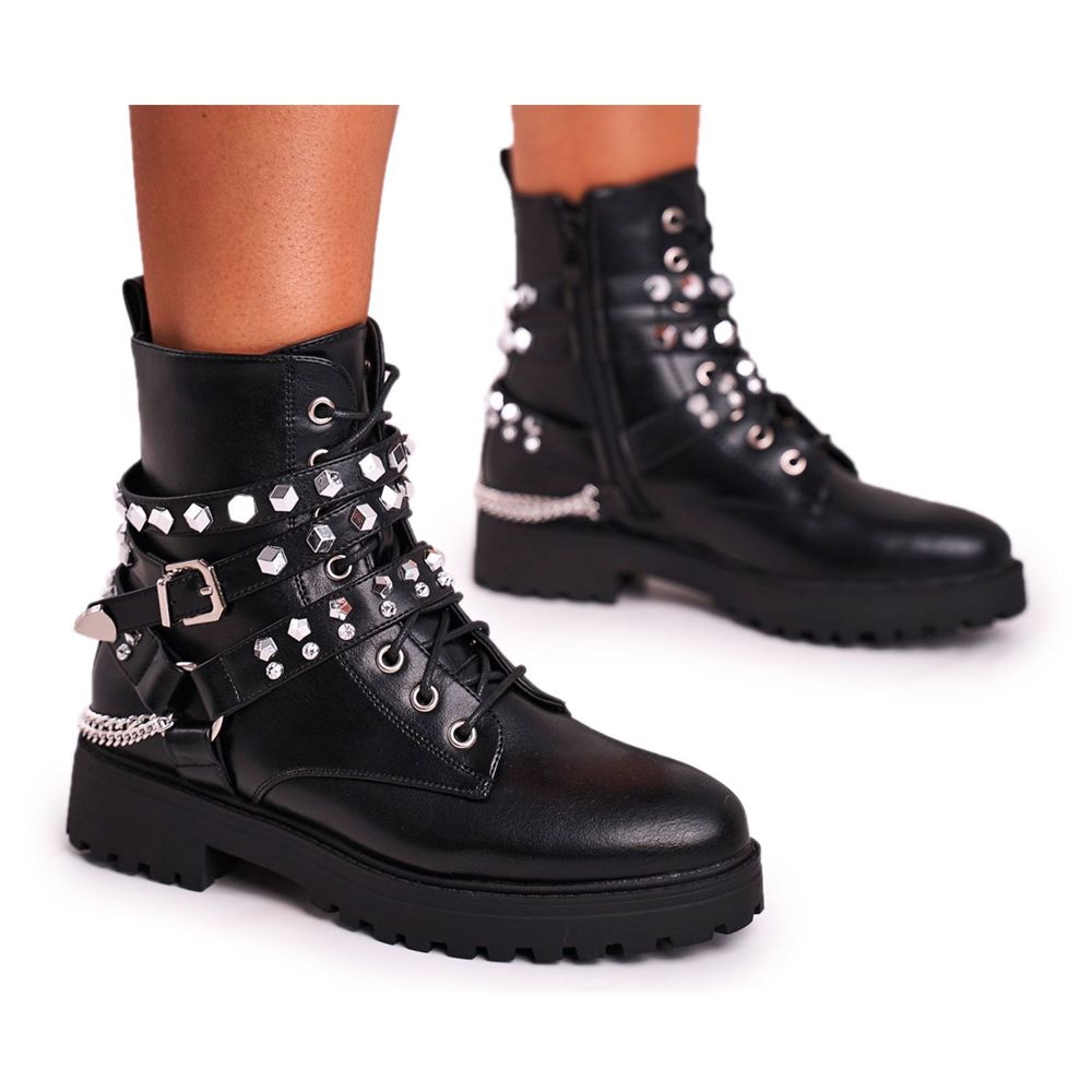 FB2 Botki Damskie Ciepłe Dżety Łańcuchy Czarne Desire