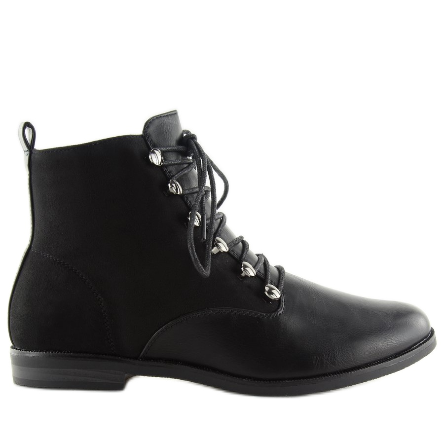 Stylowe botki damskie czarne 8685 Black to idealny wybór na chłodniejsze dni. Wykonane z wysokiej jakości eko skóry i eko zamszu, łączą elegancję z komfortem. Oryginalne sznurowanie dodaje im charakteru, a klasyczny czarny kolor sprawia, że można je łatwo zestawić z różnorodnymi stylizacjami.