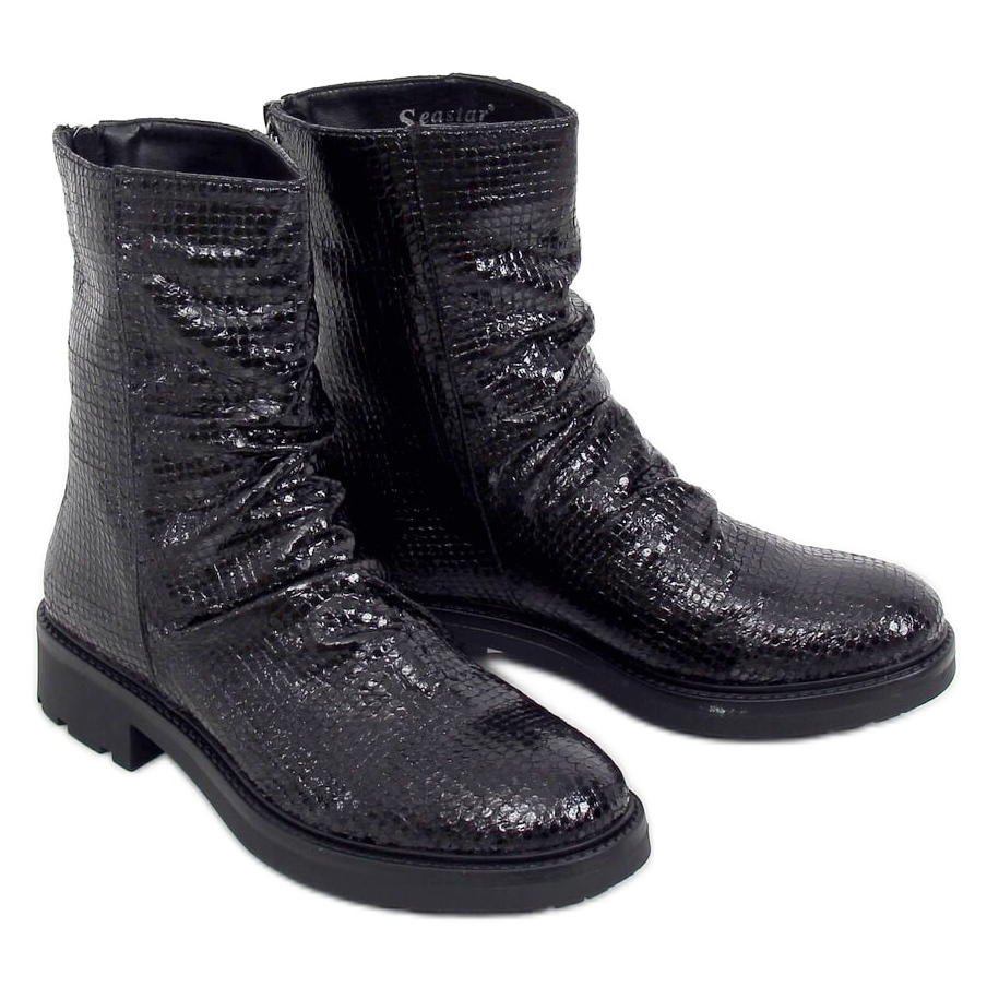 Botki damskie czarne RB74 Black to idealna propozycja dla kobiet, które pragną łączyć modę z komfortem. Te stylowe buty na traperowanej podeszwie są nie tylko wyjątkowo trendy, ale także bardzo funkcjonalne. Dzięki praktycznemu zapięciu na zamek błyskawiczny umieszczonemu z tyłu cholewki, zakładanie botków staje się szybkie i wygodne.