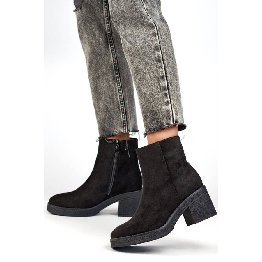Inna marka Botki damskie klasyczne na obcasie zamszowe czarne MS1508B