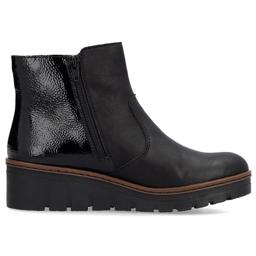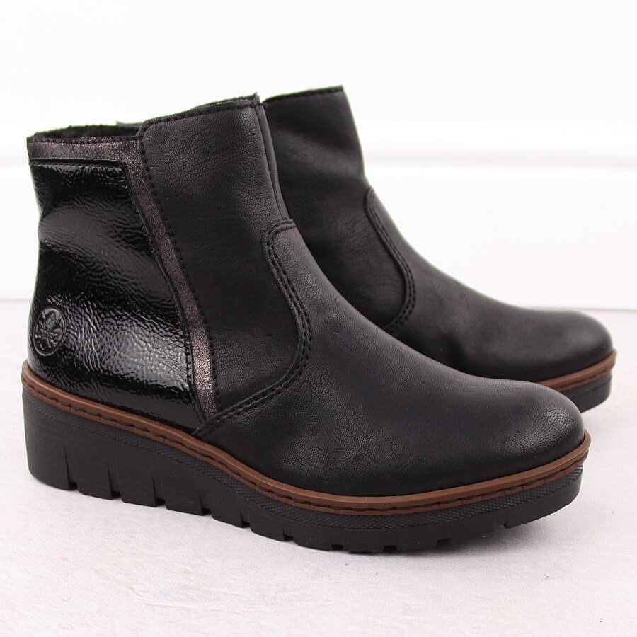Szczegóły: Botki damskie komfortowe lakierowane czarne Rieker X9150-00