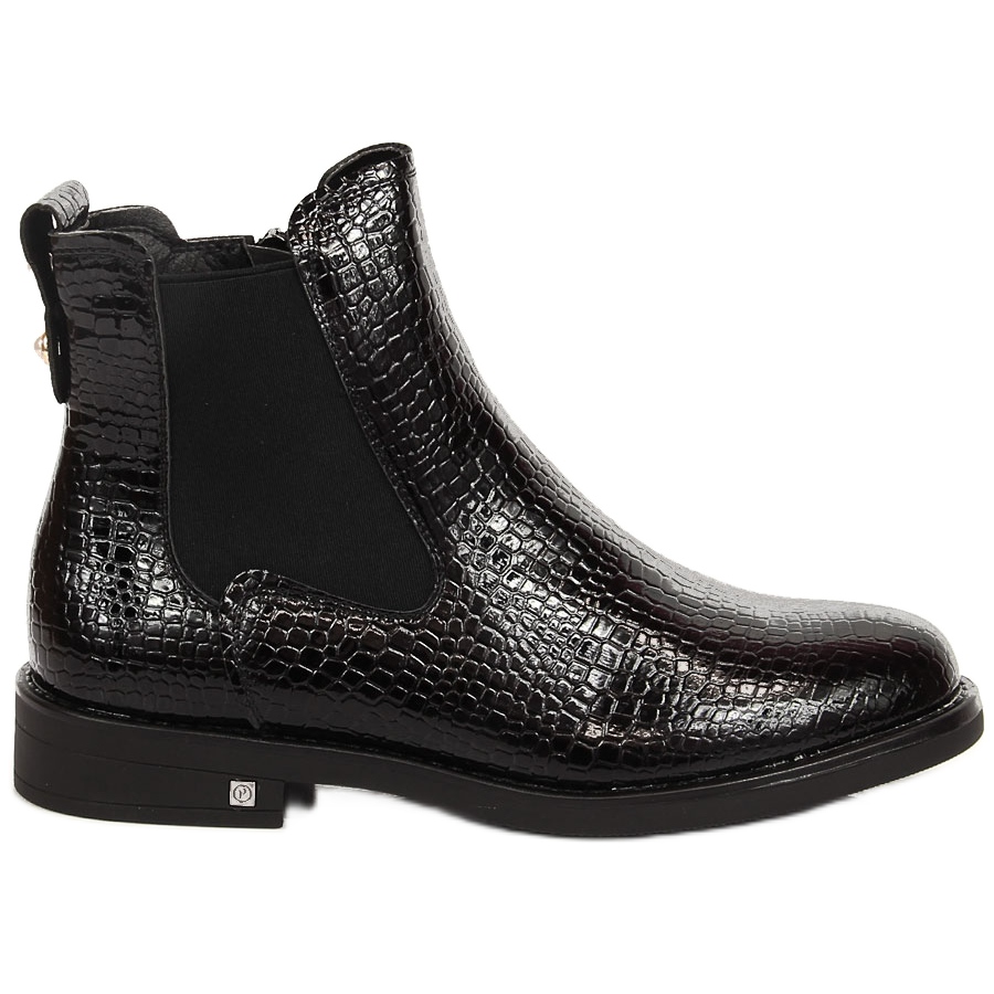 Szczegóły: Botki damskie lakierowane kroko ocieplane czarne Potocki