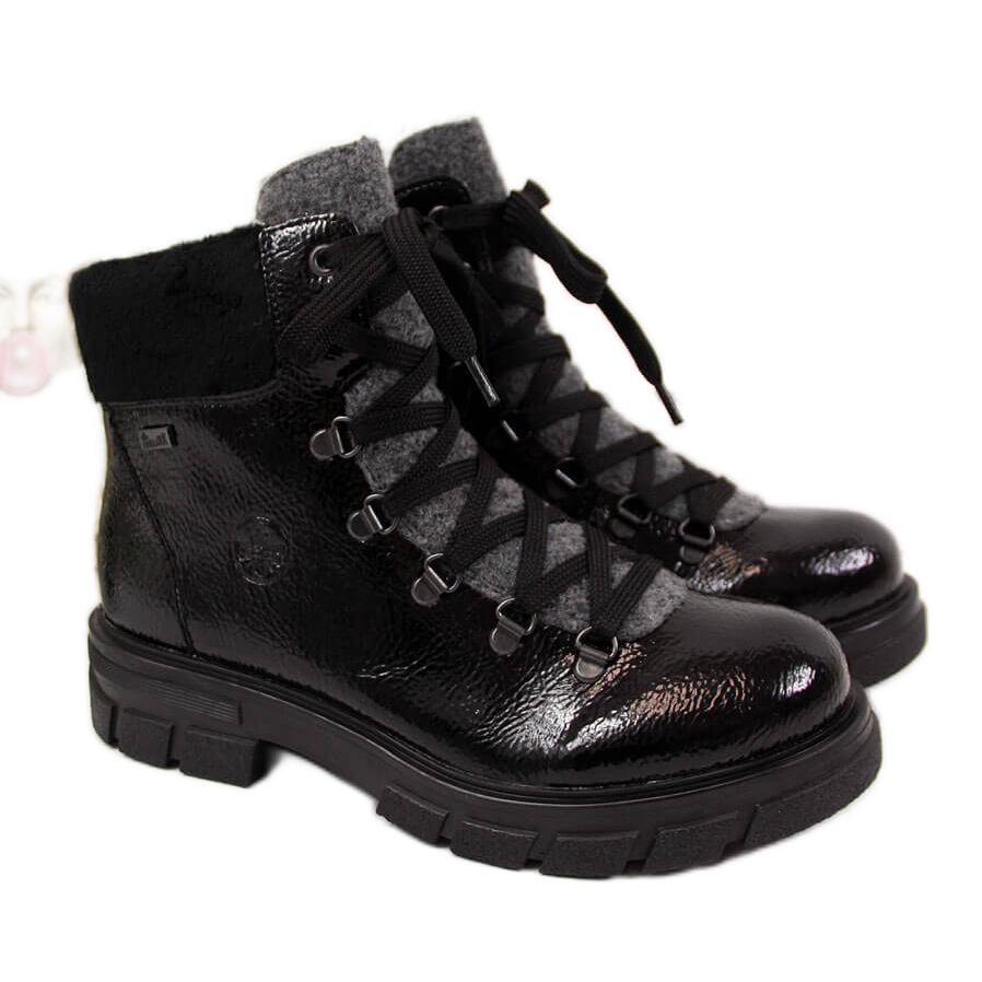 Rieker Botki damskie lakierowane ocieplane czarne Rieker Z9132-00