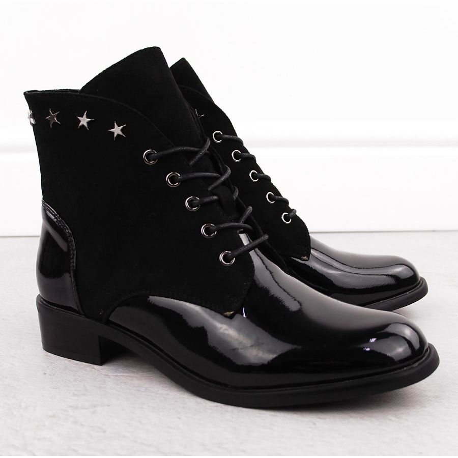 Sabatina Botki damskie lakierowane z nitami czarne Sabatina DM24-25P