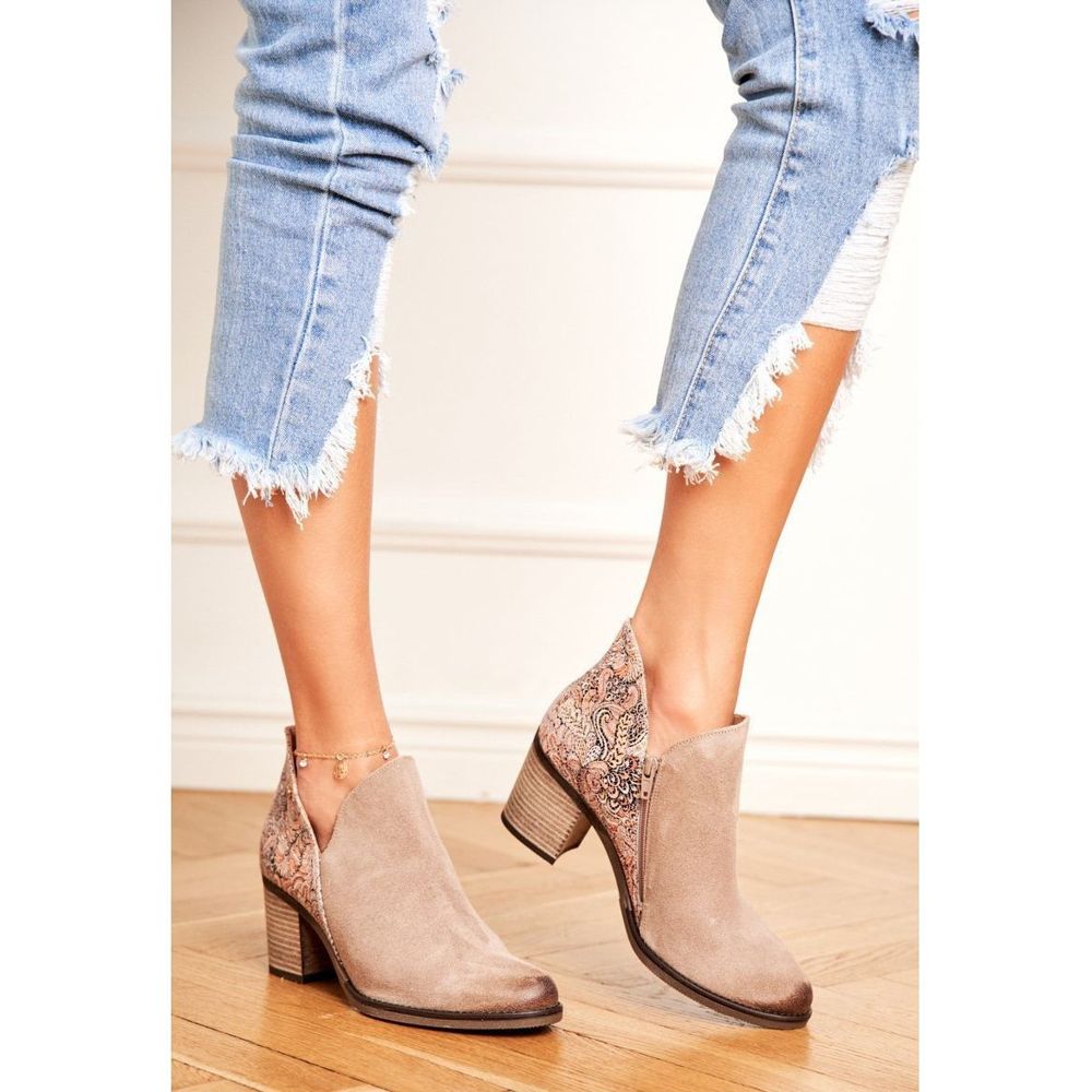 Szczegóły: Botki Damskie Na Słupku Maciejka Wiosenne Skóra Beżowe 04492-04 beżowy