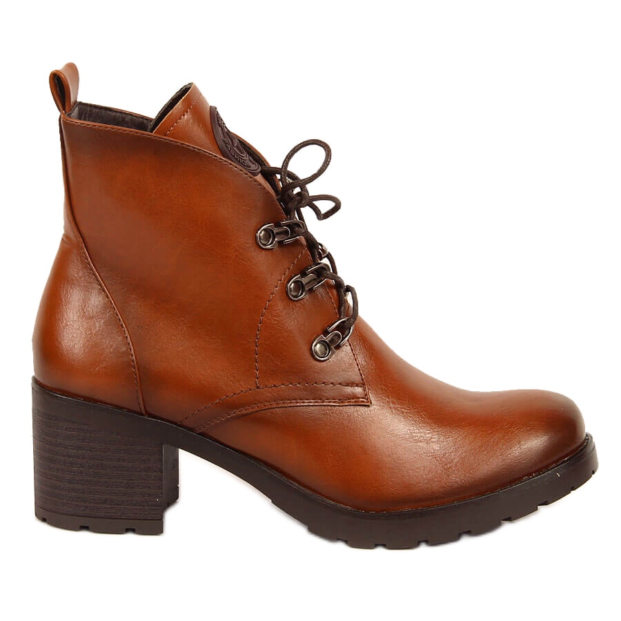 POTOCKI Botki damskie ocieplane na klocku sznurowane brązowe Potocki