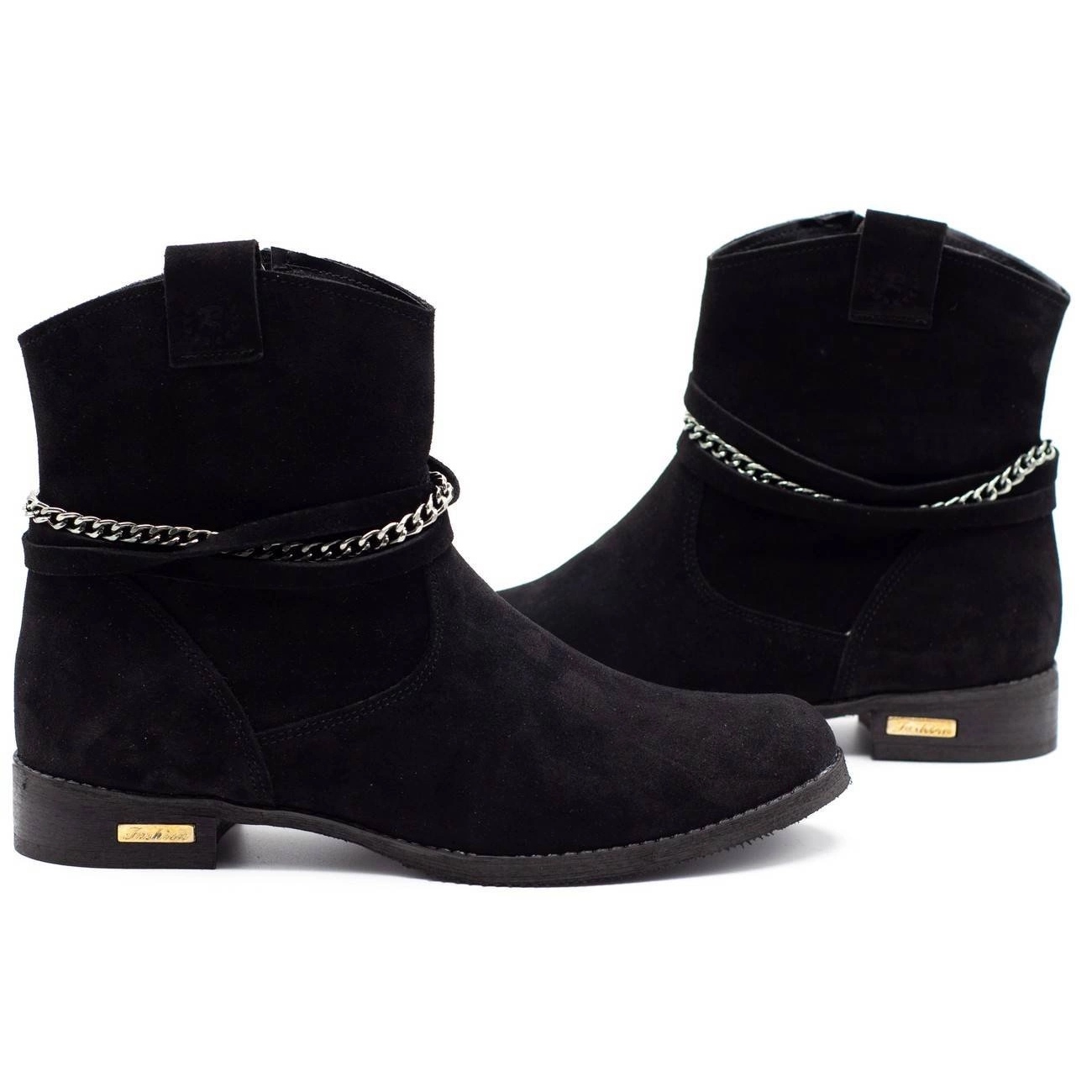 Olivier Olivier Botki damskie ocieplane z łańcuszkiem Luna czarne