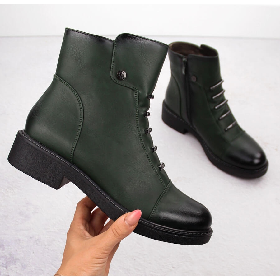Jezzi Botki damskie ocieplane zielone Jezzi ASA252-5