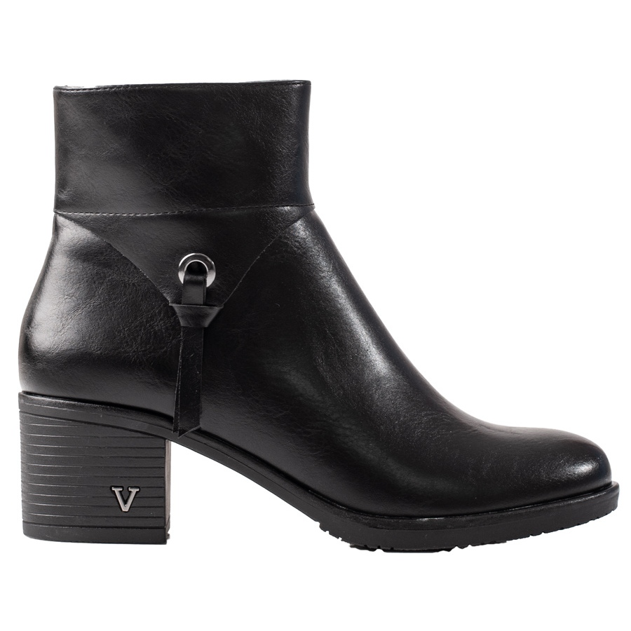 W. Potocki W. Potocki Botki damskie Potocki na szerokim słupku czarne