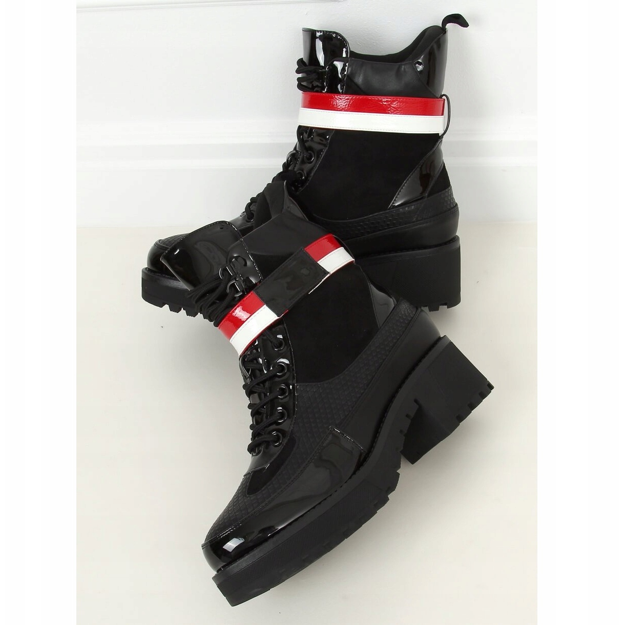 Inna marka Botki damskie sznurowane czarne NS086 Black białe czerwone