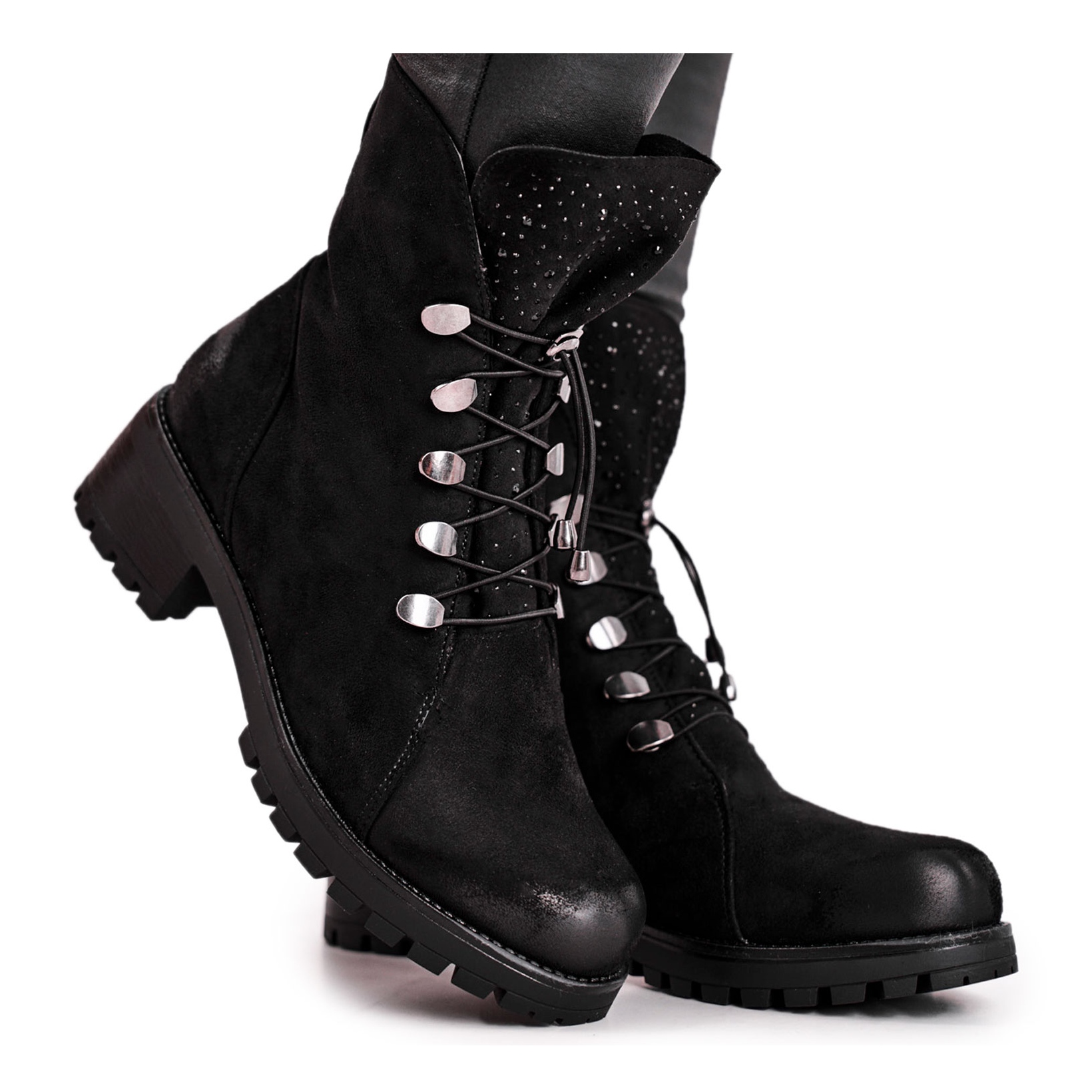 S.Barski S.Barski Botki Damskie Workery Ciepłe Czarne Bipper