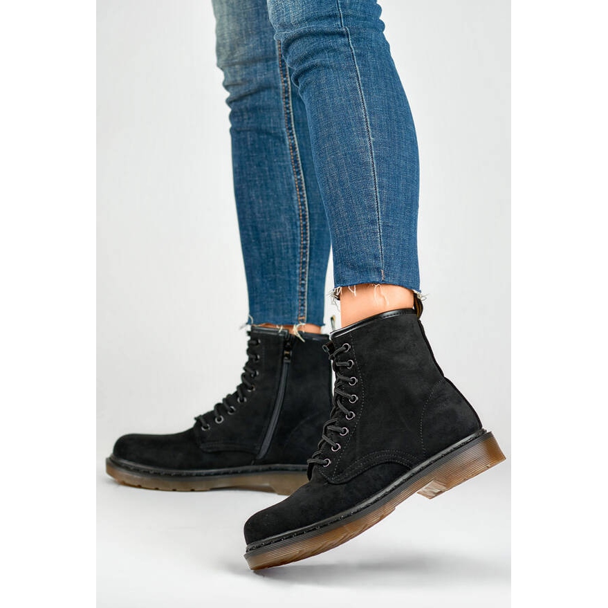 Inna marka Botki damskie workery zamszowe czarne H1080B