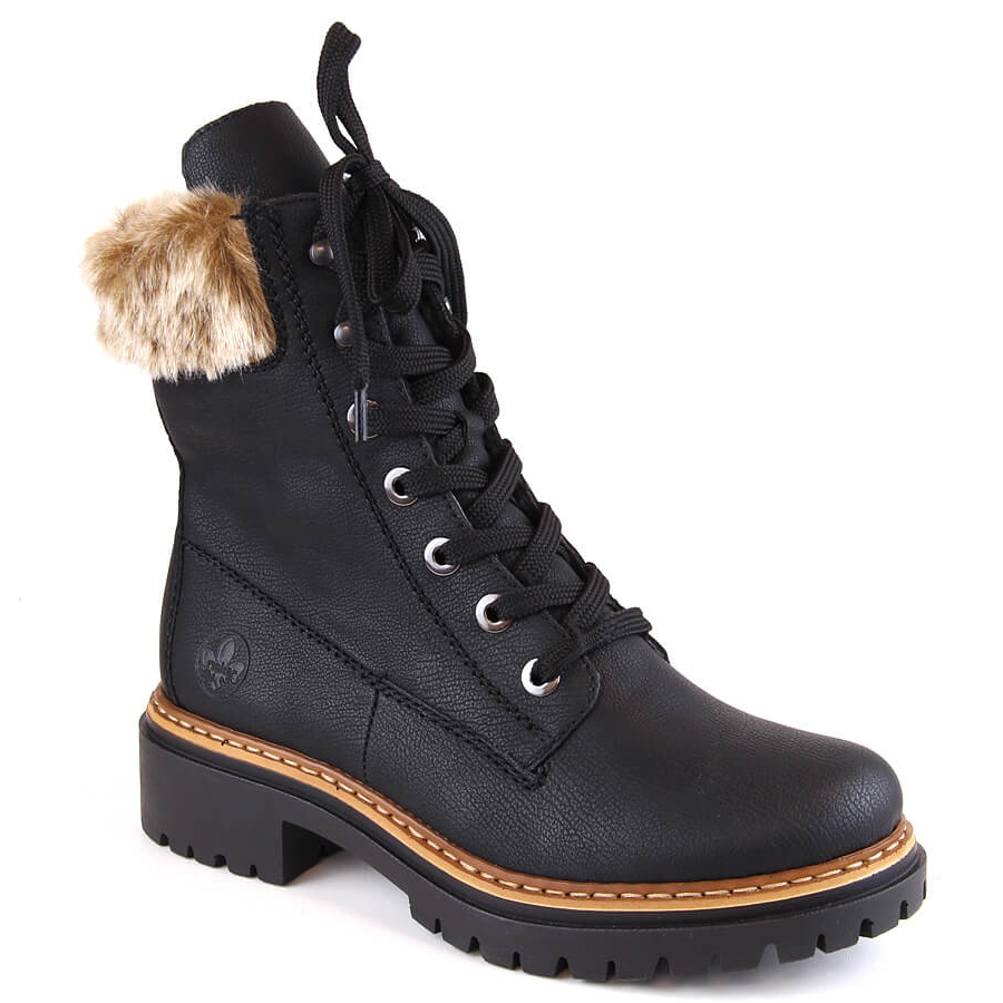 Rieker Botki damskie z futerkiem czarne Rieker 72630-00