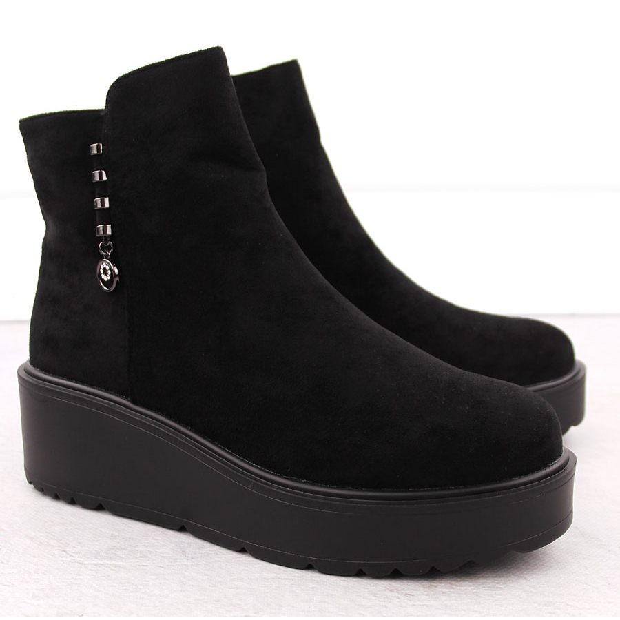 Potocki Botki damskie zamszowe na grubej platformie czarne Potocki 11305