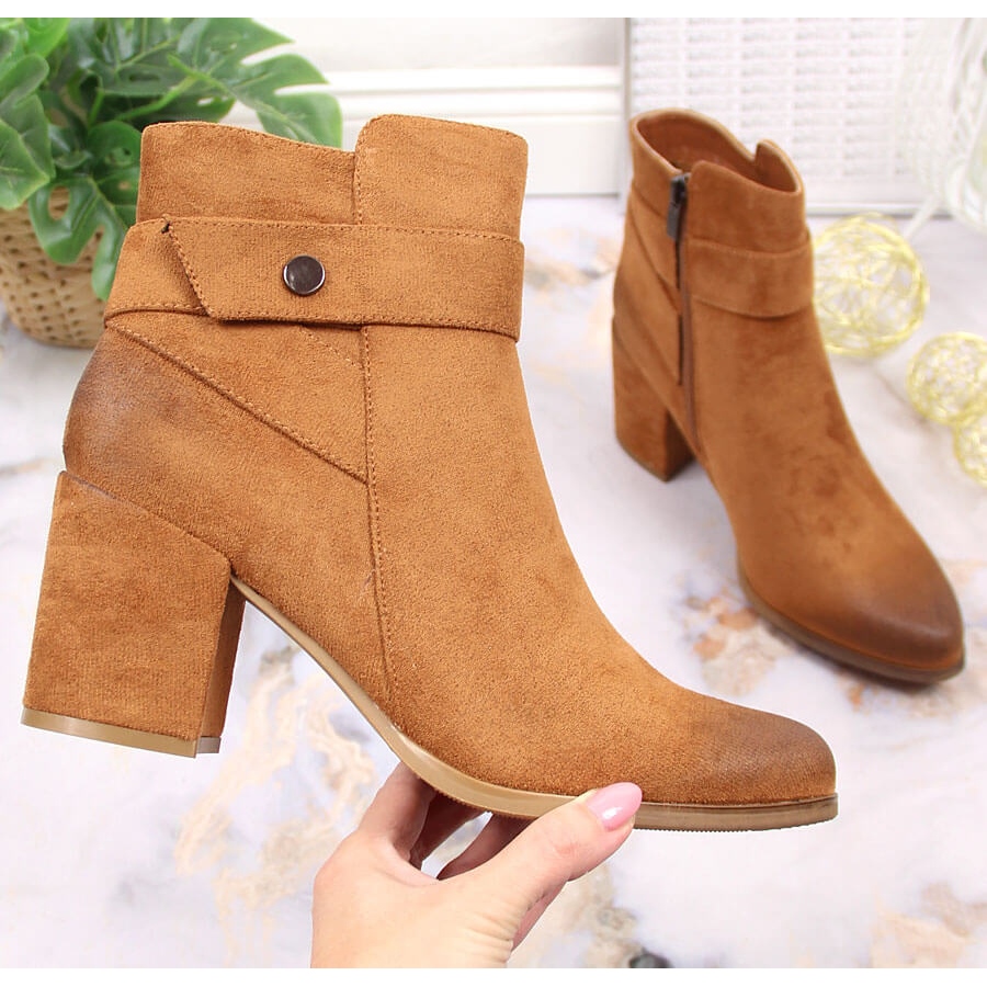 Szczegóły: Botki damskie zamszowe ocieplane camel Laura La.Fi brązowe