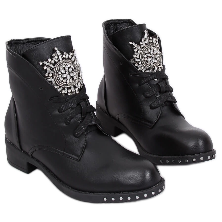 Dzięki dodatkowym zdobieniom w postaci dżetów i błyszczących kamieni, te botki staną się wyróżniającym elementem każdej garderoby. Odkryj nowy wymiar mody z botkami glany czarnymi 100-902BO-1 Black II Gatunek i bądź na czasie z najnowszymi trendami!