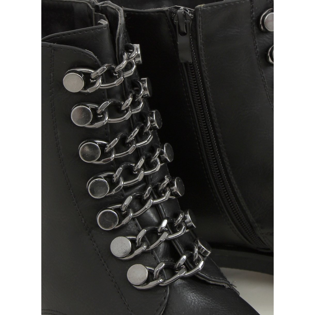 Botki glany czarne TE1720-29 Black to idealna propozycja dla kobiet, które cenią sobie nietuzinkowy styl i wygodę. Te licowe buty damskie wyróżniają się nowoczesnym designem, który łączy rockowy charakter z codzienną funkcjonalnością. Zamiast klasycznego sznurowania, botki zostały ozdobione efektownymi łańcuchami, które nadają im niepowtarzalnego, odważnego looku.