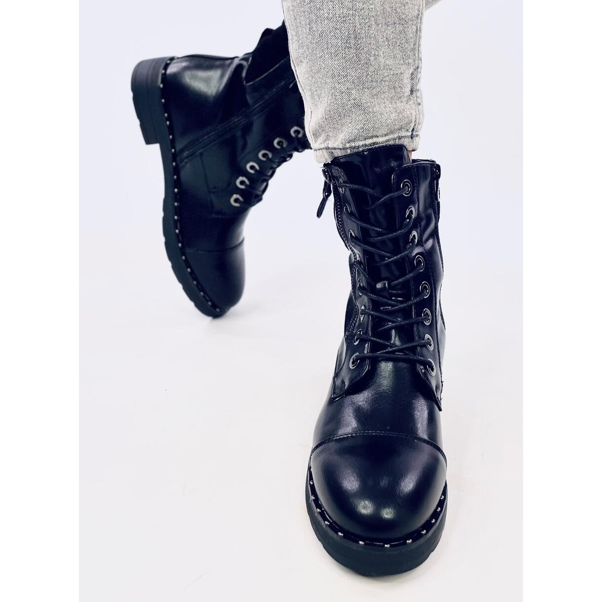 Eleganckie i odporne na chłodniejsze dni botki typu glany Lone Black to połączenie militarnego charakteru z kobiecą wygodą. Wyróżniają się ponadczasowym fasonem, ozdobnymi ćwiekami wzdłuż podeszwy oraz praktycznym połączeniem tradycyjnego sznurowania i bocznego zamka, który ułatwia zakładanie. Wnętrze ocieplone delikatnym futerkiem zapewnia ciepło i komfort nawet przy niskich temperaturach.