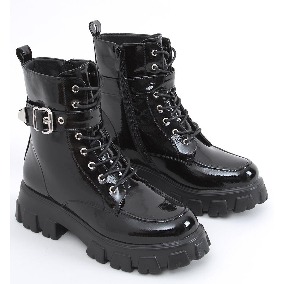 Przedstawiamy Botki lakierowane Addi Black, które stanowią doskonałe połączenie stylu i komfortu! Te czarne workery na wysokiej podeszwie przyciągają wzrok dzięki swojemu ekstrawaganckiemu lakierowanemu wykończeniu. Idealne na co dzień, są nie tylko modne, ale również funkcjonalne - klaszycznie sznurowane oraz wyposażone w praktyczne zapięcie na suwak z boku cholewki.
