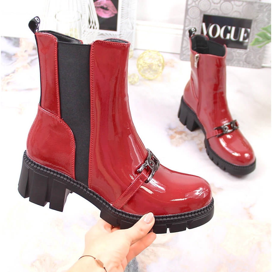 Szczegóły: Botki lakierowane na klocku i platformie z łańcuchem ocieplane czerwone Potocki
