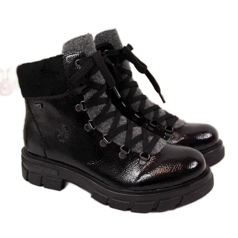 - Model: Botki lakierowane ocieplane czarne W Rieker