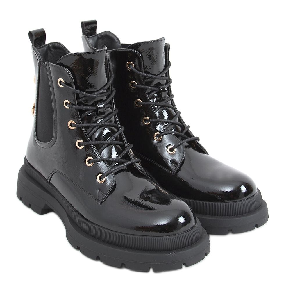 Inna marka Botki lakierowane z łańcuszkiem Jake Black czarne